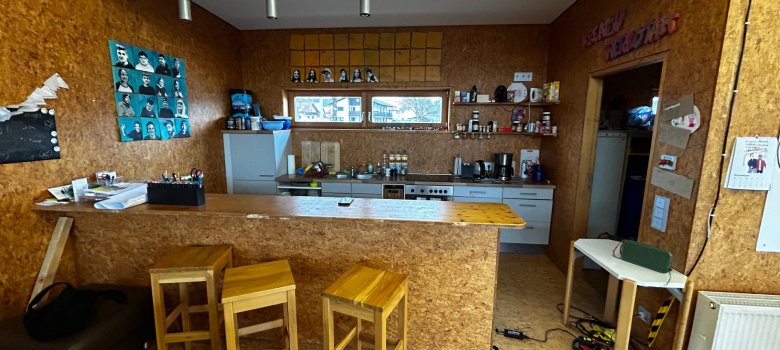 Unser großer Lounge-Bereich ist das Herzstück für gemeinsame Abende. Bequeme Sofas und viel Platz machen ihn ideal für Gruppengespräche, Spieleabende oder einfach zum Abschalten. Das kreative Wanddesign unterstreicht den jugendlichen Charakter des Treffs.
